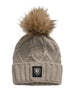 Il Berretto Blauer Dacia da Donna - Avorio è perfetto per la donna che desidera uno stile caldo e femminile. Realizzato in misto lana e cachemire, presenta inserti in lurex per un tocco alla moda e un basso impatto ambientale. Con trecce e pon pon in vera pelliccia, questo berretto trendy è un must-have per affrontare il freddo con stile.
