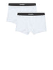 Boxer Dsquared2 Twin Pack da Uomo - Bianco è realizzato in cotone stretch con logo jacquard. Composto da 94% cotone e 6% elastan, offre una sensazione leggera sulla pelle. Design aderente con logo Dsquared2 al punto vita per un tocco di personalità. Perfetto per chi cerca comfort e stile unico.