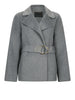 Il cappotto grigio da donna di Liu Jo è realizzato in panno di misto lana, con collo a revers e tasche laterali. La cintura sur tono con fibbia d-ring e la chiusura doppiopetto conferiscono un tocco elegante, mentre la fodera interna assicura comfort e calore. Perfetto per un look sofisticato e alla moda.