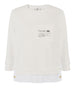 La felpa da donna in maglia di felpa avorio Elisabetta Franchi presenta un taglio cropped sopra la schiena, girocollo a costine e maniche ¾. Il taschino stampato con logo, bottoni in metallo dorato e logo con lettering sul retro conferiscono un tocco di classe. La balza in popeline aggiunge un dettaglio raffinato. Vestibilità regular. Composizione: 65% cotone, 35% poliestere. Perfetta per un look elegante e casual.