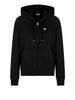 La felpa zip Ea7 da donna in nero è l'ideale per un look sportivo ma glamour. Realizzata in cotone elasticizzato, con cappuccio e chiusura a zip, presenta il logo EA7 in metallo dorato sul petto. Con fondo e polsini elasticizzati, è perfetta per l'allenamento e il relax. Aggiungi un tocco di stile e comfort al tuo guardaroba con questa felpa di design.