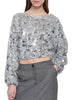 La blusa Gaudi da donna in argento è l'ideale per una donna che ama brillare. Realizzata in tessuto sfrangiato con paillettes, presenta uno scollo a barca e un fit cropped per un look scintillante e glamour. Perfetta per occasioni speciali o serate indimenticabili.