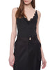 Il Top Gaudi da Donna - Nero è perfetto per una donna che ama brillare. Realizzato in maglia di viscosa e lurex, con dettagli in pizzo e spalline sottili, questo top nero è ideale per un look seducente. Lo scollo a V completa il look scintillante e glamour, perfetto per una serata speciale.