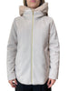 Il Giubbotto Emme Marella Sorriso da Donna - Avorio, è un capo imbottito in panno soft che unisce funzionalità e stile urbano. Il design compatto e trasformabile offre la possibilità di rimuovere la pettorina e il cappuccio, rivelando un look più essenziale. Con zip e tasche laterali, questo giaccone corto è perfetto per un outfit trendy e versatile. Vestibilità regular fit.