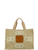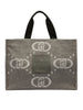 Questa shopping bag unisce stile e praticità grazie al tessuto spalmato effetto montone e ai dettagli in teddy. Il logo ricamato e le borchie applicate conferiscono un tocco distintivo, mentre i comodi manici e la tracolla logata, regolabile e rimovibile in gros grain, permettono di indossarla a mano, a spalla o a tracolla. All'interno, una pratica tasca con zip completa la funzionalità della borsa.