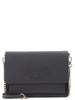 Dettagli: Chiusura con risvolto e clip magnetica, dettagli in metallo color oro, catenella removibile, tasca interna piatta