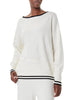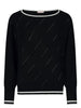 Elegante e contemporanea, questa maglia nera in misto viscosa è impreziosita da strass applicati e dal logo monogram, che aggiungono un tocco luminoso. Lo scollo a barca e le maniche lunghe a palloncino, insieme ai dettagli a contrasto e ai bordi a costine, completano il design con stile femminile e sofisticato.