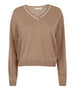 La maglia Yes Zee da donna in lana e acrilico presenta un elegante scollo a V con dettagli in lurex oro, maniche lunghe e polsini a costine. Perfetta per un look casual e sofisticato, ideale per la donna moderna che ama distinguersi con stile. Confortevole e di qualità, questa maglia è un must-have per il tuo guardaroba.