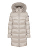 Il piumino da donna Colmar in colore avorio è l'alleato perfetto per affrontare la stagione con classe e praticità. Caratterizzato da un cappuccio con pelliccia sintetica, tasche laterali con zip e imbottitura in piuma naturale, questo capo offre calore senza rinunciare allo stile. Il taglio medio lungo e avvitato esalta la silhouette, mentre il tessuto 100% riciclato e i dettagli come il logo Colmar Originals applicato sulla manica sinistra lo rendono un capo sofisticato e di qualità.