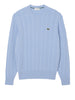 Il pullover Lacoste celeste da uomo è un capo essenziale per l'inverno, realizzato con una spessa lana cardata per garantire calore ed eleganza. Con dettagli a treccia, bande a coste profonde e l'iconico coccodrillo ricamato sul petto, questo capo dal taglio classico e comfortevole è perfetto per un look sofisticato e alla moda.