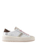 Le sneakers Date Hill Low Platform da Donna sono realizzate in pelle bianca di alta qualità, con dettagli eleganti come la scritta D.A.T.E sulla linguetta in suede beige e la banda laterale in glitter color platino. La suola platform in gomma cucita offre un comfort extra, mentre il talloncino posteriore in nabuk marrone aggiunge un tocco di stile. Realizzate interamente in Italia, queste sneakers sono perfette per un look casual e trendy.