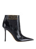 Stivaletto da donna in pelle nera Elisabetta Franchi con punta affusolata e tacco stiletto. Logo laterale con finiture dorata per un tocco luminoso. Composizione esterna e interna in pelle di alta qualità, suola in cuoio. Perfetto per un look elegante e sofisticato.