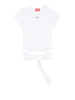 La T-shirt Diesel Bunny da Donna in bianco è perfetta per chi ama distinguersi con stile. Realizzata in cotone biologico, presenta una linea aderente con fasce che si allacciano intorno al corpo, creando un cut-out sulla schiena. Completa il look una patch a forma di D sul petto. Ideale per un look casual e originale.