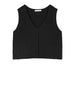 Il Top Patrizia Pepe da Donna in nero è realizzato in maglia super soft con vestibilità slim e scollo a "V". Senza maniche e con nervatura centrale decorativa, si presta a look di layering o come parte di un matching set urban glam. Ideale da abbinare con mini gonna e cardigan lungo per un outfit audace e irriverente.
